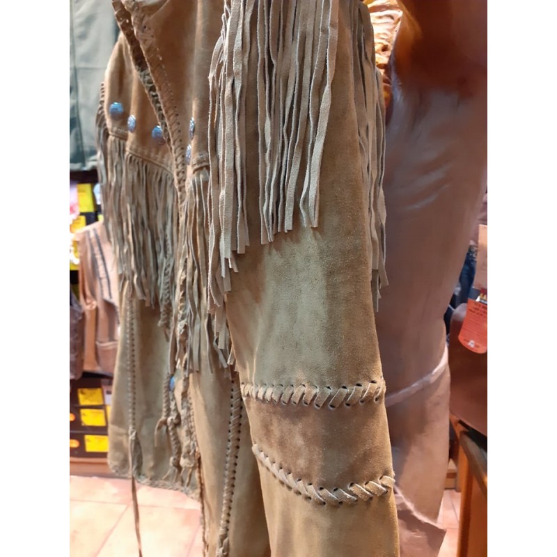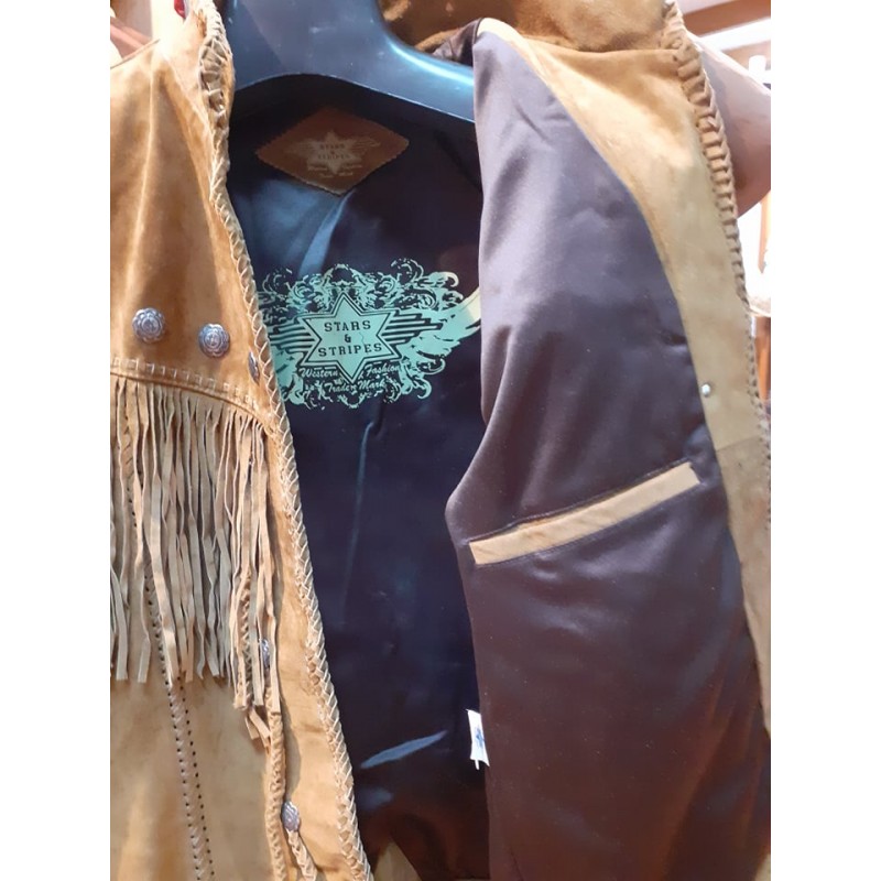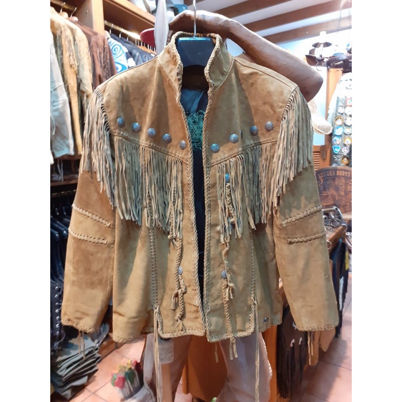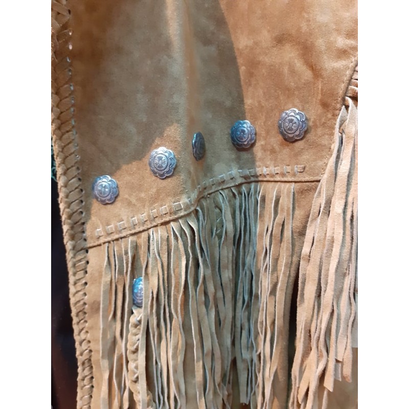 WESTERN JACKET ARAPAHO ΧΕΙΡΟΠΟΙΗΤΟ ΔΕΡΜΑΤΙΝΟ ΑΠΟ ΜΟΣΧΑΡΙΣΙΟ ΔΕΡΜΑ ΕΞΑΙΡΕΤΙΚΗΣ ΠΟΙΟΤΗΤΑΣ ΜΕ ΚΡΟΣΙΑ ΚΑΙ ΔΕΡΜΑΤΙΝΕΣ ΠΛΕΞΟΥΔΕΣ ΚΟΥΜΠΩΜΑ ΜΕ CONCHOS , ΕΣΩΤΕΡΙΚΗ ΤΣΕΠΗ ΜΕ ΥΦΑΣΜΑΤΙΝΗ ΣΑΤΕΝ ΕΠΕΝΔΥΣΗ. ΤΟ XXL ΕΙΝΑΙ 300 ΕΥΡΩ.